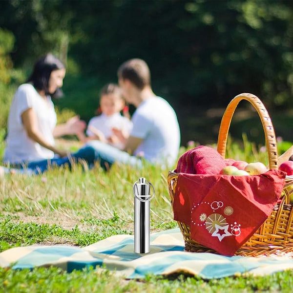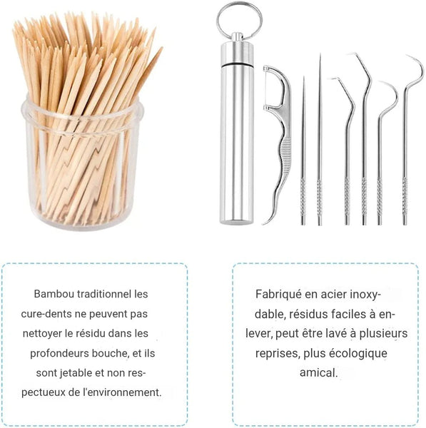 CleanSmile™ | Soins Quotidiens | Kit de 7 cure-dents et soie dentaire réutilisables | Acier inoxydable | Porte-clefs